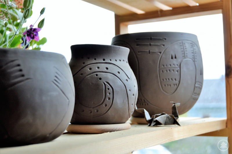 Ich bin seit Kindestagen eine leidenschaftliche Musikerin und kam über die Musik zur Mittelalterszene. Auf den Märkten musiziere ich und habe meinen Stand. Deshalb töpfere ich heute vor allem Geschirrkeramik, keltische Mittelalter-Ware in bester Qualität und spülmaschinenfest.
