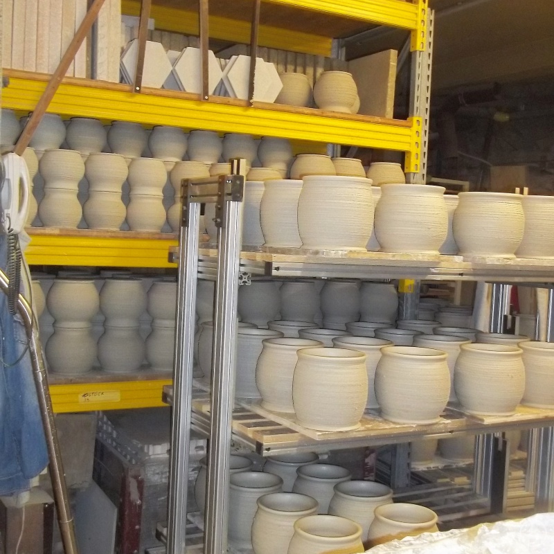 Zunächst hole ich mir mal den Rohstoff an einem Weiher in der Nähe von Wasserburg. Der Lehm dort enthält Quarze, die dienen als Hartmacher. Den Lehm muss ich zunächst flüssig machen, sieben und trocknen, um Steine und Äste entfernen zu können. Dann mische ich ihn mit anderen Naturtonen, um ihn drehfähig zu machen. Die Konsistenz entscheide ich nach Gefühl. Einen Bierkrug drehe ich dann etwa fünf Minuten. Danach muss er einen Tag trocknen. Dann verputze ich ihn und füge einen Henkel an. Es folgen drei weitere Tage des Trocknens. Danach wird der Krug bei 900 Grad Celsius vorgebrannt. Ich trage innen und außen eine Glasur auf, die aber nicht zwingend notwendig ist. Abschließend folgt der Glattbrand bei 1.200 Grad Celsius. Dieses Dichtbrennen schafft die Qualität der Ware. Der Ton kann sich nicht mit Flüssigkeit vollsaugen und damit nicht zu schimmeln beginnen.