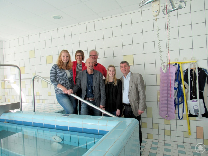 Sie überzeugten sich von der Qualität der Angebote, v.li.: Tina Sixt, Ulrich Buschkämper, Natalie Walter, Horst Kuffner, Marina Klimmer im gesponserten Schwimmbad, dessen Bau 2001 durch die Aktion Mensch und Spenden aus der Bevölkerung ermöglicht wurde.
