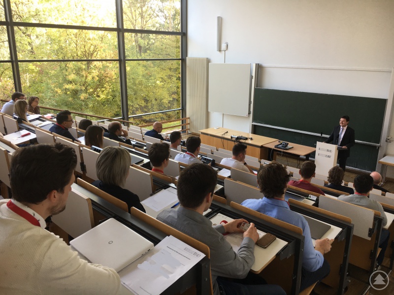 Wolfgang Stern (Leiter des Zentrums für Akademische Weiterbildung an der THD) bei der Begrüßung der Studienanfänger.
