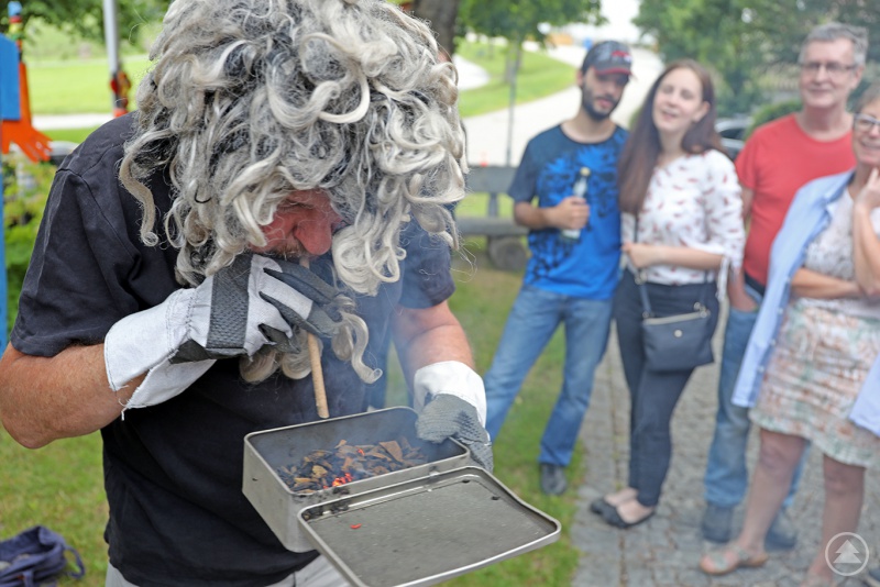 Pilzexperte Alois Zechmann zeigte dem erstaunten Publikum, wie man aus Steinen und Zunderschwamm ein Feuer entfacht.Pilzexperte Alois Zechmann zeigte dem erstaunten Publikum, wie man aus Steinen und Zunderschwamm ein Feuer entfacht.