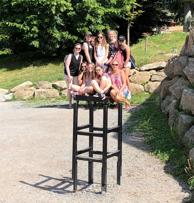 Weiter ging es zu dem mittlerweile überregional bekannten „Haus am Kopf“, das dem einen oder anderen Mädchen das Gefühl gab, plötzlich seekrank geworden zu sein. In dem umgedrehten Haus verwirren nämlich verschobene und schiefe Ebenen erheblich den Gleichgewichts- als auch den Sehsinn der Besucher.