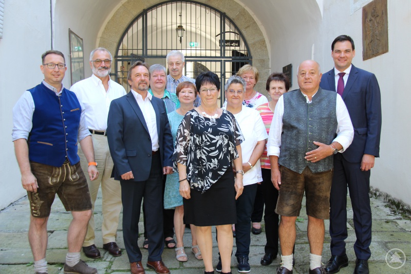 Landrat Sebastian Gruber (rechts), Josef Kaspar, Baier Therese, Sieglinde Kanamüller, Johanna Kellermann, Rosemarie Schopf, Regina Weis, Albrecht Bayer, Irene Nowotzin, Josef Tiefenböck, Michael Fuchs, Personalratsvorsitzender Alexander Bertelshofer