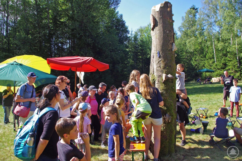Kreativ tätig werden konnten die Besucher bei der Trommelaktion mit Balboo, dem Waldbären und bei den Bastelstationen des Nationalparks. Hier wurden einerseits fleißig Holzspechte bemalt, die abschließend in einer gemeinsamen Aktion an einen Totholzstamm genagelt wurden, der zukünftig an die Spechtmission erinnern soll. Andererseits konnten die Besucher Stoffbeutel bedrucken und mit diversen Pflanzensamen füllen. Diese können im heimischen Garten zu einer bienen- und insektenfreundlichen Umwelt beitragen.