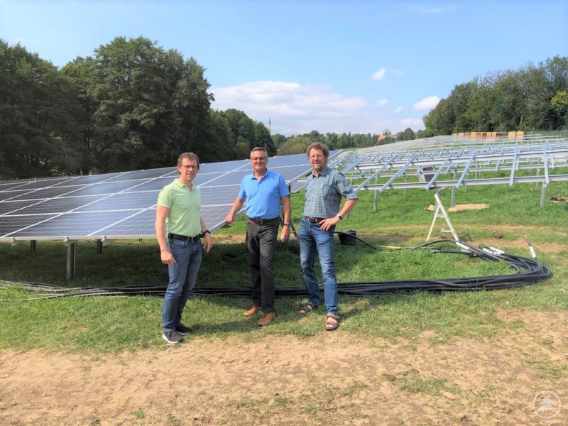 Der Bau der Freiflächen-Photovoltaikanlage befindet sich voll im Zeitplan; die ersten Module auf dem 17 200 Quadratmeter großen Grundstück sind installiert. Davon überzeugten sich Thomas Mader, MdL Alexander Muthmann und Hans Madl-Deinhart, die Vorstandsmitglieder der Bürgerenergiegenossenschaft Freyung-Grafenau, bei einem Termin auf der Baustelle. Sie sind zuversichtlich, dass der Fertigstellungstermin klappt. Noch im Herbst 2019 soll die Anlage in Betrieb gehen.