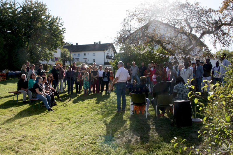 „Es ist uns eine Freude, dass ihr alle gekommen seid“, stellte sie fest. Ein Höhepunkt des Nachmittags war dann die Eröffnung des Büffets. Es gab Speisen aus Bayern und den Herkunftsländern der Asylbewerber. So konnte die Besucher kosten, wie gefüllte Weinblätter aus Syrien oder das traditionelle Essen aus Sierra Leone oder Aserbaidschan schmecken. Schnell verwandelte sich der Garten in einen großen Picknickbereich. Bei Speis und Trank gab es die Gelegenheit einander besser kennenzulernen.