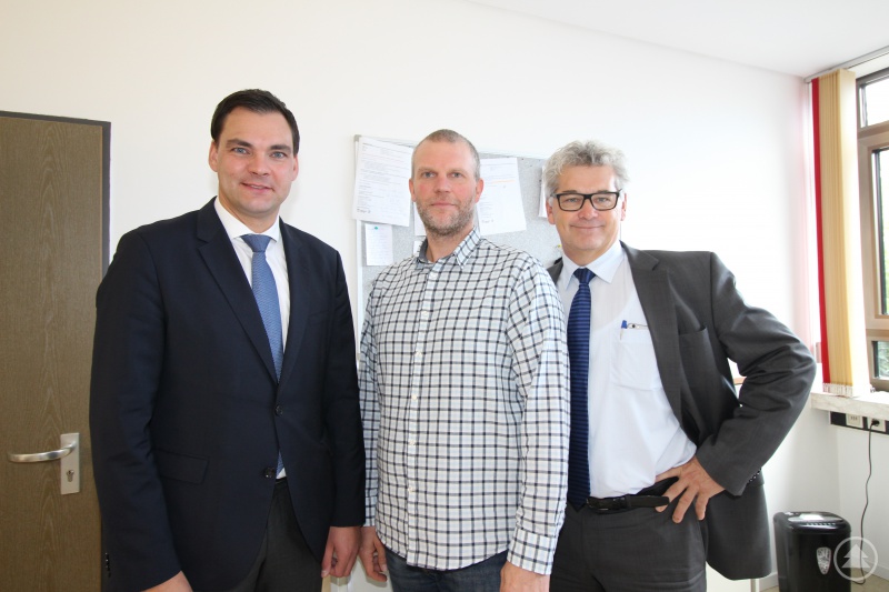 Landrat Sebastian Gruber (links) und der zuständige Abteilungsleiter Siegfried Wilhelm (rechts) haben den neuen Heimleiter des Schülerwohnheims Waldkirchen Tobias Ehrhardt vor kurzem offiziell willkommen geheißen.