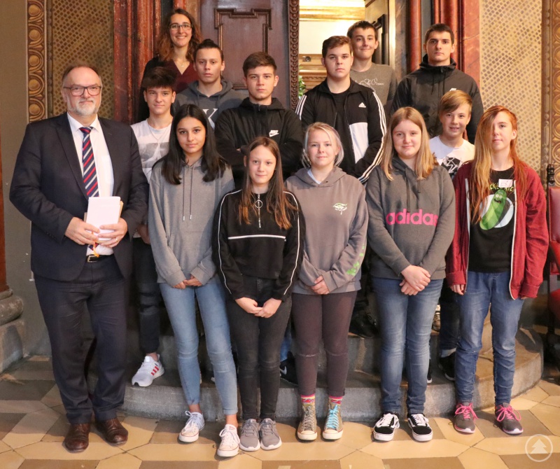 Abschließend bedankte sich der begleitende Lehrer Thomas Krispin und überreichte dem Oberbürgermeister die Fragen aus den einzelnen Klassen.