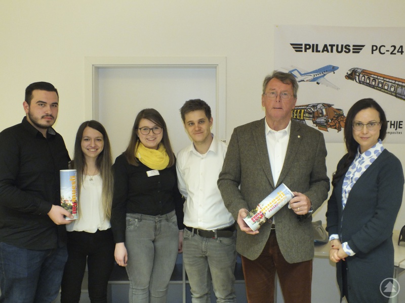 Die Wirtschaftsjunioren bei Wethje Carbon-Composites. V.l. Mitarbeiter der Firma Wehtje Carbon-Composites mit Geschäftsführer Wolfgang Krassnitzer und Olga Kylina (Vorstand Wj Passau)