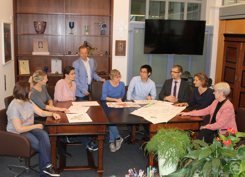 Im Büro der Landrätin wurden die Zwischenergebnisse besprochen, im Bild (v.li.): ÖPNV-Sachgebietsleiterin Theresa Seifert, Abteilungsleiterin Dr. Stefanie Duarte Fernandes, Jana Graßl (Landratsamt Regen), Landrätinnen-Büroleiter Günther Weinberger, Christina Wibmer (Landratsamt Regen), Tobias Schmalzl (BEG), Michael Schütze (VCDB), Heike Ikert und Landrätin Rita Röhrl.