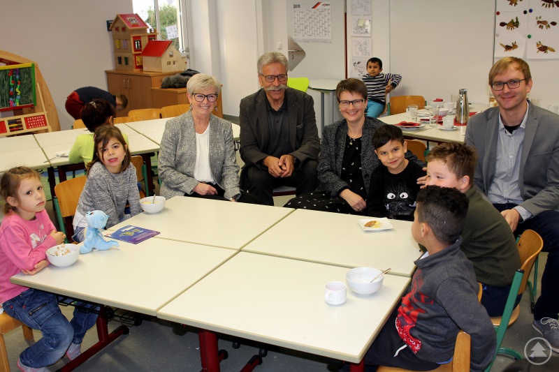 Sie berichtete, dass immer mehr Kinder „ohne vorheriges Frühstück und Pausenbrot in die Schule kommen. Hungrige Kinder können nicht gut lernen“, betont die Pädagogin. In Zusammenarbeit mit dem Landkreis habe man die Situation deutlich verbessern können. Bisher habe man, mit hohem Aufwand, einmal pro Woche ein Frühstück für die Kinder anbieten können. Zum neuen Schuljahr hat der Landkreis eine Küche in den Schüleraufenthaltsraum eingebaut. Nun sei es leichter, ein Frühstück für alle Kinder anzubieten. „Immer dienstags und donnerstags können sich die Kinder nun stärken. Die größeren Schüler nehmen ihr Frühstück in der Vorviertelstunde ein, bei den jüngeren gehört das Essen zum ritualisierten Ganztagesablauf“, berichtet Schulleiterin Langer. „Insgesamt werden jedesmal rund 60 Kinder versorgt“, so die Schulleiterin weiter.