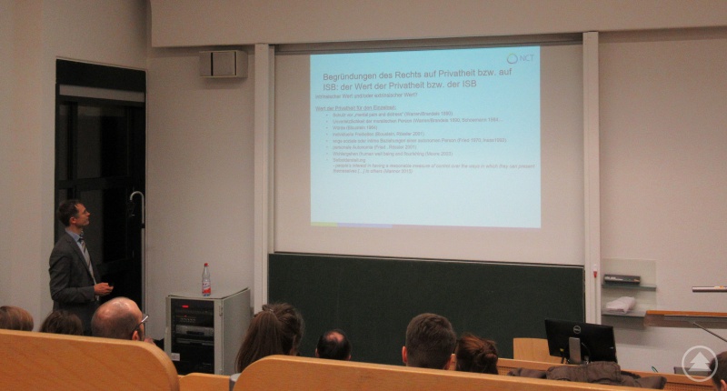 Unter anderem über die informationelle Selbstbestimmung von jungen Menschen, die am heutigen Tage Thema war. Um auf das, auf den ersten Blick vielleicht unscheinbare, dennoch jedoch sehr breite Feld der Privatheit von Kindern aufmerksam zu machen, erläuterte Christoph Schickhardt einige Fallbeispiele, in welchen deutlich wird, wie ernst das Thema sein kann. Darunter wurden zum Beispiel elterliche Überwachung, unkontrollierte Nutzung digitaler Medien, Ausspähung durch Regierungsbehörden, datensammelnde Spielsachen, und der mediale Fokus auf prominente Kinder erwähnt.