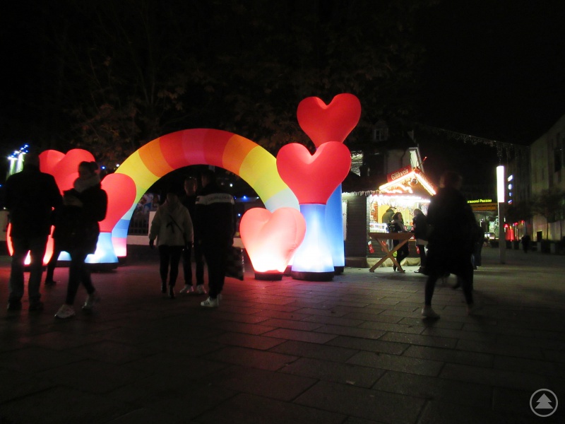 Zu den individuellen Beleuchtungen und Dekorationen der einzelnen Geschäfte, wurden dafür dutzende, rund vier Meter hohe Kerzen in Straßen und Gassen der gesamten Stadt verteilt. Außerdem wurde am Ludwigsplatz ein großer, bunter, beleuchteter und mit Herzchen verzierter Bogen aufgestellt, welcher von den anwesenden Passanten sehr positiv aufgenommen und auch gerne als Fotohintergrund benutzt wurde. So wollten sich nicht nur Pärchen, sondern auch Kinder, Senioren oder gleich die ganze Familie inmitten der funkelnden Farben ablichten lassen.