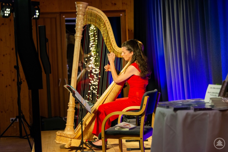 So eine Harfe ist ein schwieriges Instrument – aber lange nicht so schwierig wie jene Menschen, die eine Harfenistin buchen: Unternehmerinnen im rosa Glitzerdirndl, Konzerthallen am rechtsrheinischen Ende der Welt, biestige Hotelmitarbeiterinnen, traurige Hochzeitsgesellschaften, schallend lachende Trauergemeinden – und natürlich der Papst. Vom Menscheln, das den Musikbetrieb in allen Klangfarben begleitet, wusste Solokünstlerin Silke Aichhorn am Sonntagabend auf der GutsAlm Harlachberg ein Lied zu singen.
