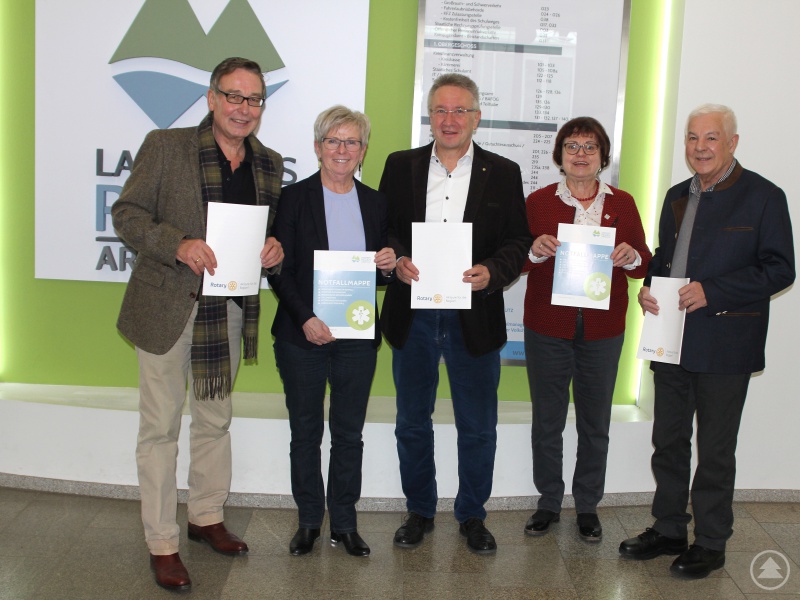 Landrätin Rita Röhrl (2.v.li.) mit der Seniorenbeauftragten Christine Kreuzer (4.v.li.) und den Rotariern (v.li.) Carlo Schmidt (Vorsitzender Hilfswerk), Präsident Lothar Maier und Georg Kuhndörfer.