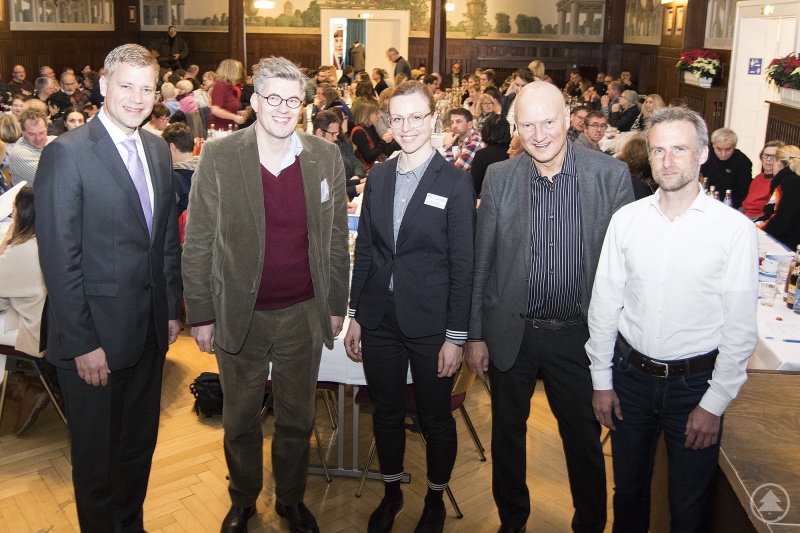 Bezirkstagspräsident Dr. Olaf Heinrich (l.) und der Ärztliche Direktor des Bezirksklinikums Mainkofen, Prof. Wolfgang Schreiber (2.v.r.), mit den Referenten (v.l.) Dr. med. Jens Benninghoff, Dr. med. Isabel Maurus und Dr. Alexander Heimbeck.