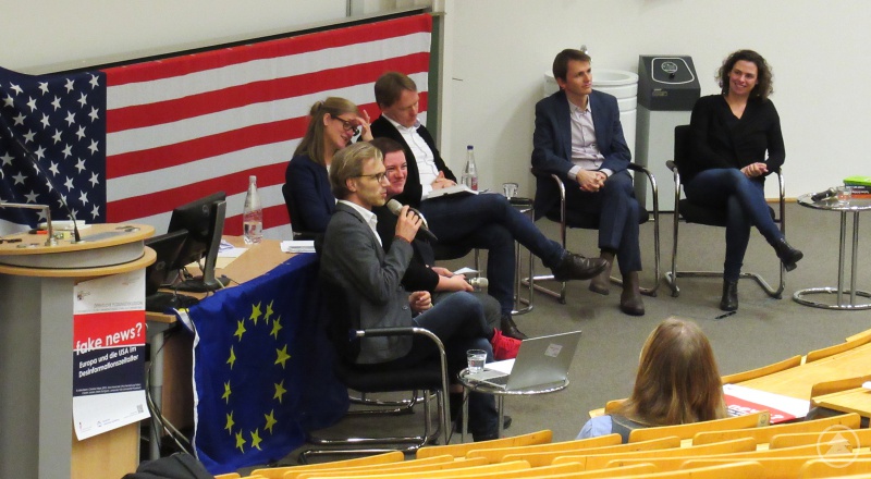 Im Zuge der Digitalisierung hört und liest man zunehmend den Begriff „Fake News“. Was es genau damit auf sich hat und welche weitreichenden Folgen Falschinformationen im 21. Jahrhundert mit sich bringen, wurde am 05. Dezember während der Podiumsdiskussion unter dem Motto „Fake News? Europa und die USA im Desinformationszeitalter“ an der Universität Passau umfangreich besprochen.