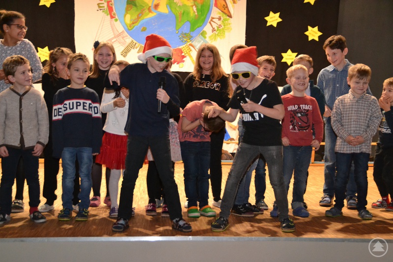 Es folge das klassische Weihnachtslied ‚Alle Jahre wieder‘. Der Vortrag nahm allerdings eine nicht geahnte Wende, als plötzlich Rapper der Klassen 3 und 4 das Lied auf ihre ganz eigene Art interpretierten und dafür viele Lacher im Publikum und Szenenapplaus ernteten.