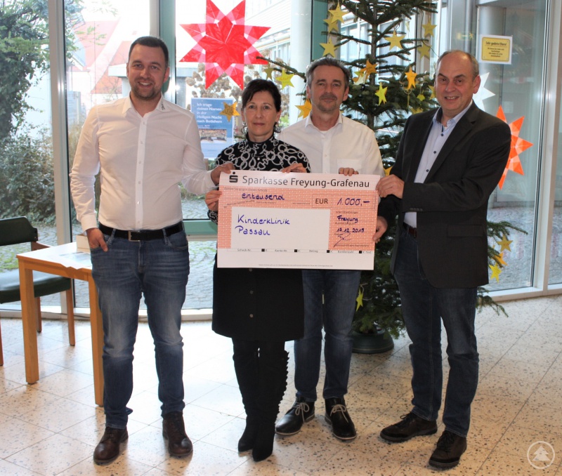 TOHA-Geschäftsführer Anton Donnerbauer mit Ehefrau Susanne Donnerbauer (Mitte) und Sohn Hannes Falk (l.) übergeben den Spendenscheck in Höhe von 1.000 Euro an Reinhard Schmidt, Geschäftsführer der Kinderklinik Dritter Orden Passau.TOHA-Geschäftsführer Anton Donnerbauer mit Ehefrau Susanne Donnerbauer (Mitte) und Sohn Hannes Falk (l.) übergeben den Spendenscheck in Höhe von 1.000 Euro an Reinhard Schmidt, Geschäftsführer der Kinderklinik Dritter Orden Passau.