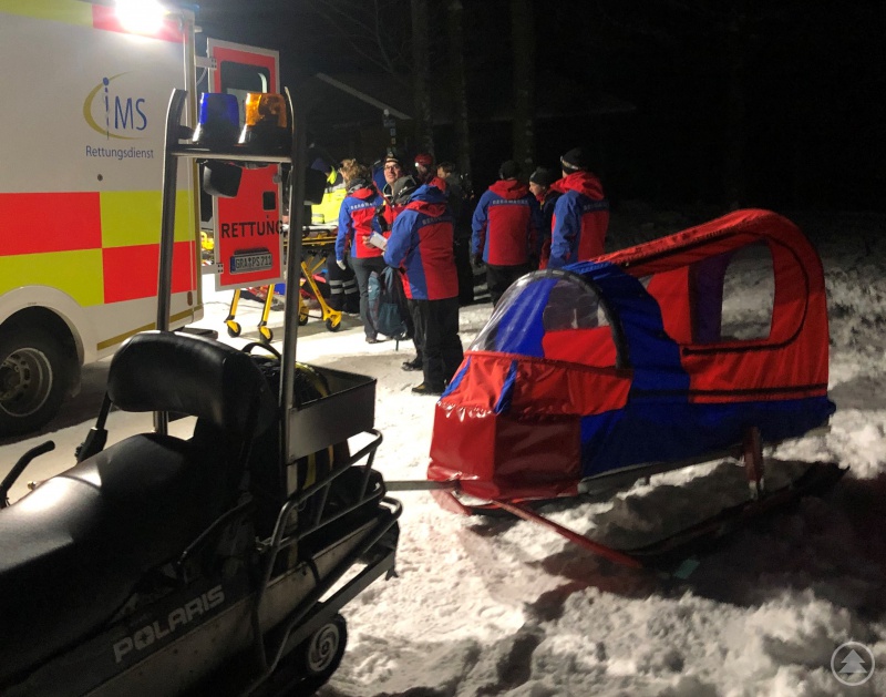 Um 18.57 Uhr ging der erste Alarm durch die Integrierte Leitstelle Passau ein: verletzte Person am Lusenschutzhaus. Fünf Retter rückten aus. Der Winterweg war aber derart vereist, dass ein Weiterkommen samt angehängtem Nachläufer unmöglich wurde. So musste der Nachläufer abgehängt werden und einer der Retter blieb zur Sicherung beim Gerät, damit nicht etwa ein Schlittenfahrer dagegen fährt. Die anderen kämpften sich mit dem Schlitten bis zum Schutzhaus durch. Nach der Erstversorgung der Sprunggelenksverletzung wurde die Patientin dann äußerst vorsichtig mit dem Motorschlitten zur Waldhausreibe transportiert und dem RTW übergeben. Um 21.57 Uhr war Einsatzende.