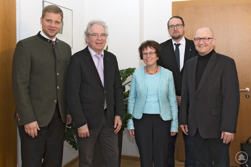 von links: Bezirkstagspräsident Dr. Olaf Heinrich, Holger Peters, Geschäftsführer des Diakonischen Werks Landshut, Irmgard Kaltenstadler, Leiterin der Sozialverwaltung des Bezirks, Frank Baumgartner, Geschäftsführer von NANO, Christof Hartmann, Gesellschafter und 1. Vorsitzender des Elternverbands Autismus Regensburg