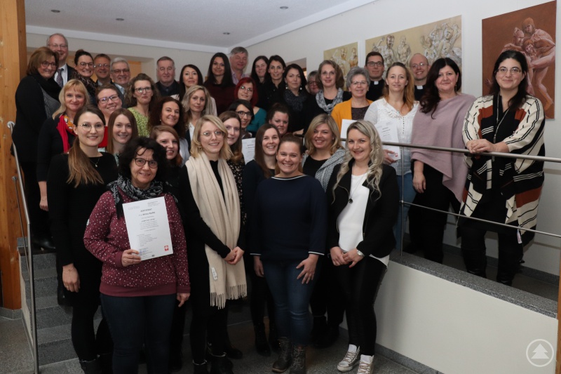 28 Pädagoginnen aus Kindertageseinrichtungen in Pfarreien der Diözese Passau und der Caritas haben den Kurs „Kompetent leiten“ abgeschlossen. Kinder zu bilden, zu erziehen, zu betreuen und die Familien auch im Glauben zu begleiten, sei gesellschaftlich wie kirchlich eine große Aufgabe. Das betonten die Caritas-Fachbereichsleiterin Birgit Zachariae und die Kursleiterin Claudia Pagler. Am Mittwoch, 22. Januar, haben sie den Teilnehmerinnen die Zertifikate überreicht.