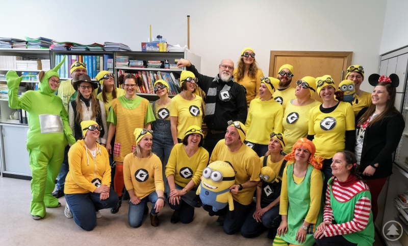 Eine Menge Spiel und Spaß erwartete die Schülerinnen und Schüler der Staatlichen Realschule Grafenau am Unsinnigen Donnerstag. Die SMV unter der Leitung der Lehrkräfte Simone Streicher und Andreas Mühlbauer organisierte für alle Jahrgangsstufen ein abwechslungsreiches Programm, bei dem z. B. der beste Kicker-Profi ermittelt, scherzhaftes Wissen über die Lehrer und die Schule abgefragt oder die Geschicklichkeit getestet wurde. In der Pause konnte man sich dan zu Faschingsmusik in der Aula mit leckeren Köstlichkeiten wie Cocktails, Obstspießen und Muffins stärken. Ein Höhepunkt war für die Schüler sicherlich die Polonaise durchs Schulhaus, wobei der Weg auch durch das Lehrerzimmer führte. Denn auch die Lehrer ließen sich an diesem Tag nicht lumpen und marschierten unter anderem als eine große Gruppe "Minions" auf, angeführt von ihrem "Gru" - Realschulkonrektor Martin Weiß.