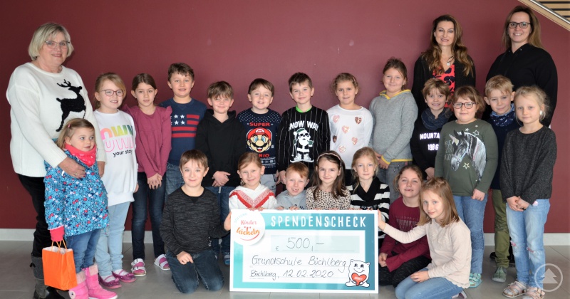 Seit Jahren organisiert die Schulfamilie einen großen Weihnachtsbasar, an dem die Kinder weihnachtliche Basteleien, Köstlichkeiten, aber auch Spielsachen und Bücher zum Verkauf bieten - "das ist jedes Jahr ein großer Erfolg und es freut uns, wenn wir diesen teilen können", so auch Lehrerin Stefanie Unter. Bei der kleinen Spendenübergabe in der Grundschule halten die Schüler stolz den Scheck in die Höhe.