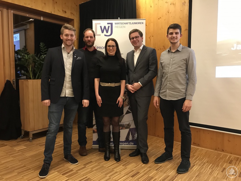 Kürzlich hat die Jahreshauptversammlung der Wirtschaftsjunioren Regen in Harlachberg (Bodenmais) stattgefunden, bei der knapp zwanzig aktive und fördernde Mitglieder des Vereins zusammengekommen sind. Als Ehrengäste konnte der Vorsitzende Philipp Paternoga Herrn Joachim Haller, Bürgermeister von Bodenmais, und Herrn Josef Weiß, 2. Bürgermeister von Regen, begrüßen. Paternoga blickte auf ein erfolgreiches Jahr 2019 zurück, in dem zahlreiche Veranstaltungen organisiert und viele Angebote für die Mitglieder erarbeitet und umgesetzt wurden. So wurden unter anderem die Firmen Schock GmbH und Rodenstock GmbH besichtigt oder ein Vortrag zum Thema „E-Mobilität vs. Diesel“ angeboten. Das Highlight des Vorjahres, das gemeinsam mit den Wirtschaftsjunioren Deggendorf organisiert wurde, war der Besuch bei der Firma Microsoft in München und ein Einblick in das moderne Arbeiten inkl. einem Workshop „Trend-Radar & Megatrends und der Mehrwert für KMUs“. Außerdem berichtete Matthias Kraus, Schatzmeister, über den Kassenstand des Vereins. Anschließend fand die Wahl der Vorstandsmitglieder statt. Matthias Kraus wurde erneut als Schatzmeister gewählt.
