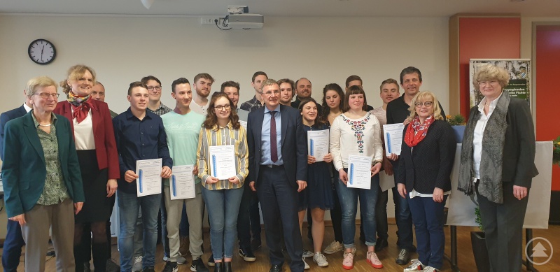 Ein Freitag wurde insbesondere deshalb als Pflanztag gewählt, da es das erklärte Ziel der Schülerinnen und Schüler war, „ein Zeichen gegen den Klimawandel [zu] setzen“, wie Elisabeth Fuchs und Jasmin Poxleitner während der Seminarpreisvergabe vergangenen Freitag am Gymnasium Freyung erklärten. Auch der Ministerialbeauftragte für Gymnasien in Niederbayern, Herr Ltd. OStD Anselm Räde, und Frau Dr. Jutta Krogull (Geschäftsführerin der Vereinigung der bayerischen Wirtschaft e.V.) waren hellauf begeistert von der Leistung des Seminars und freuten sich, die Gymnasiasten als eines der besten P-Seminare Bayerns auszeichnen zu dürfen. Neben einer Urkunde erhielten die stolzen Projektteilnehmer außerdem ein Preisgeld.