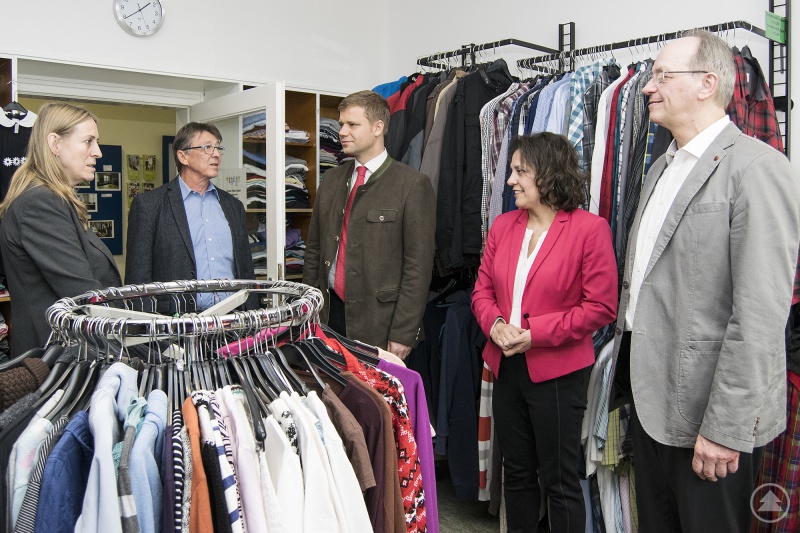 Umso wichtiger sei deshalb auch das Tageszentrum, das direkt neben dem Landshuter Bahnhof gelegen ist. „Hier bekommen die Menschen Hilfe in ihrer Tagesstruktur, was von großer Bedeutung ist“, erklärte Geschäftsführer Jürgen Handschuch. Es gehe schnell, dass sich Betroffene sozial isolieren und von anderen abschotten. „Hier finden sie eine zentrale Anlaufstelle, in der sie sich gemeinsam mit anderen ganz vielfältig beschäftigen können.“ Dabei handelt es sich aber nicht um eine Therapie, sondern um Tätigkeiten, die wieder Struktur in den Tag bringen, das Selbstbewusstsein stärken und Sinn machen. In der Kantine wird gemeinsam gekocht und gegessen, im Second-Hand-Laden kann sowohl eingekauft als auch mitgeholfen werden, im Computerraum gibt es Kurse, in der Kreativwerkstatt wird getöpfert und in der Holzwerkstatt geschreinert. Die Leiterin des Tageszentrums, Christine Lohrey, betonte wie gut es den Besuchern tue, ein Erfolgserlebnis zu haben. Sie unternimmt mit ihnen auch regelmäßig Ausflüge in die Stadt, um Perspektiven aufzuzeigen, was man mit seiner Freizeit alles anfangen kann. Unter den rund 40 wechselnden Besuchern, die täglich im Schnitt kommen, haben sich so auch Freundschaften und Gruppen gebildet, die gemeinsam Silvester oder Geburtstag feiern.