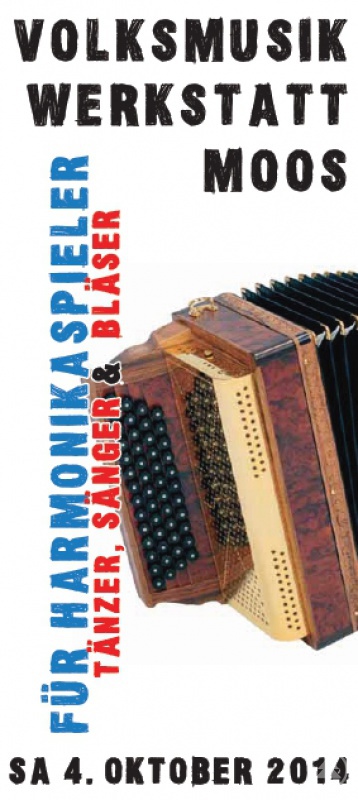 Beieinem kostenlosen Tagesseminar steht am Samstag, den 4. Oktober 2014 heuer das Harmonikaspiel im Mittelpunkt der „Volksmusikwerkstatt“. „Musikunterricht im eigentlichen Sinne wird hier nicht erteilt, wir wollen regionale musikalische Spezialitäten vermitteln, außergewöhnliches Können weitergeben und die Freude am kreativen Umgang mit überlieferter Musik wecken“, so Volksmusikexperte Roland Pongratz, den die Gemeinde Moos wieder als Organisator gewinnen konnte. Die Workshops richten sich an Sänger, Tänzer und Musikanten mit und ohne Erfahrung. Um die gesetzten Ziele zu erreichen hat Pongratz namhaften Referenten verpflichtet: