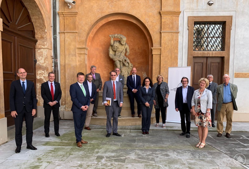 Jindřich Fryč (StS im tschechischen Ministerium für Schulwesen, Jugend und Sport, 2.v.l.), Martin Kaster (Regionalleiter der Hanns-Seidel Stiftung in der Tschechischen Republik, 3.v.l.), Ondřej Matějka (Stellvertretender Geschäftsführer des Instituts für Totalitarismusforschung, 4.v.l.), Kristina Larischová (Generalkonsulin der Tschechischen Republik in München, 6.v.r.), Reiner Deutschmann (ehemaliger kulturpolitischer Sprecher der FDP-Bundestagsfraktion, 4.v.r.), Rita Hagl-Kehl (SPD-Bundestagsabgeordnete und PStn bei der Bundesministerin der Justiz und für Verbraucherschutz, 3.v.r.), Petr Brod (Publizist, u.a. für die Süddeutsche Zeitung, 1.v.r.), Dr. Christoph Israng (Deutscher Botschafter in Prag, 1.v.l.), Tomáš Kafka (Zukünftiger tschechischer Botschafter in Berlin, Fotomitte, rote Krawatte), sowie die Mitglieder des Wirtschaftsprüfungsausschusses des Deutsch-Tschechischen Zukunftsfonds.