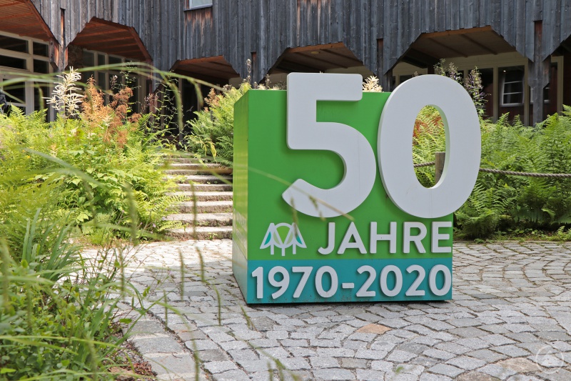 Ein knalliges Grün zieht derzeit die Blicke der Nationalparkbesucher auf sich. Die großen Würfel mitsamt einer weißen 50 darauf stehen vor dem Hans-Eisenmann-Haus in Neuschönau, vor dem Waldgeschichtlichen Museum in St. Oswald und vor dem Haus zur Wildnis in Ludwigsthal. Entstanden sind sie in der nationalparkeigenen Schreinerei bei Altschönau, wo normalerweise Wegweiser, Informationstafeln oder Sitzgarnituren angefertigt werden.