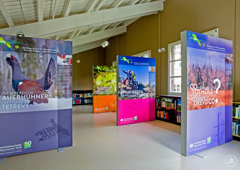 Auf mannhohen Stelen werden im Hans-Eisenmann-Haus die wichtigsten Erkenntnisse der Nationalpark-Forschung vermittelt.
