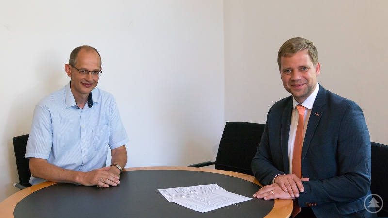 Bezirkstagspräsident Dr. Olaf Heinrich (rechts) und Michael Lobinger, Leiter der Fachschule für ökologischen Landbau.