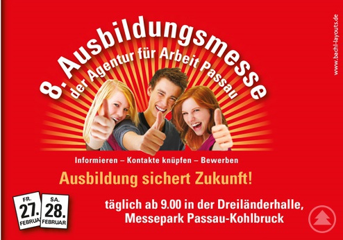 Die 8. Passauer Ausbildungsmesse unter dem Motto „Ausbildung sichert Zukunft!“ findet am 27. und 28. Februar 2015 in der Dreiländerhalle statt.