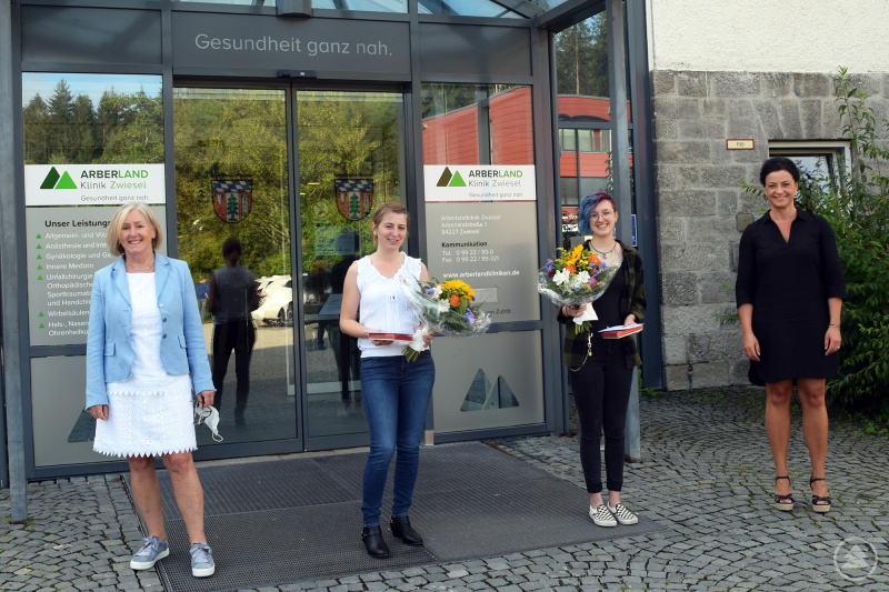 „Wir sind sehr stolz auf alle unsere Ausbildungsabsolventen und freuen uns, dieses Jahr insgesamt 15 Gesundheits- und Krankenpfleger, drei Medizinische Fachangestellte, einen Operationstechnischen Assistenten und zwei Kauffrauen im Gesundheitswesen zur erfolgreichen Ausbildung gratulieren zu dürfen“, freut sich die Personalleitung der Arberlandkliniken, Tanja Meindl, als sie auf den aktuellen Azubi-Abschlussjahrgang zurückblickt. Auf die normalerweise jährlich stattfindende offizielle Verabschiedungsfeier für alle Absolventen musste dieses Jahr aufgrund der weiterhin bestehenden Pandemie-Situation leider verzichtet werden. Doch Tanja Meindl und Pflegedienstleitung Angela Schwarz wollten es sich nicht nehmen lassen, die besten Absolventen im Bereich der Pflege zu ehren. Für den kaufmännischen Bereich fand bereits eine kleine Feierstunde statt.