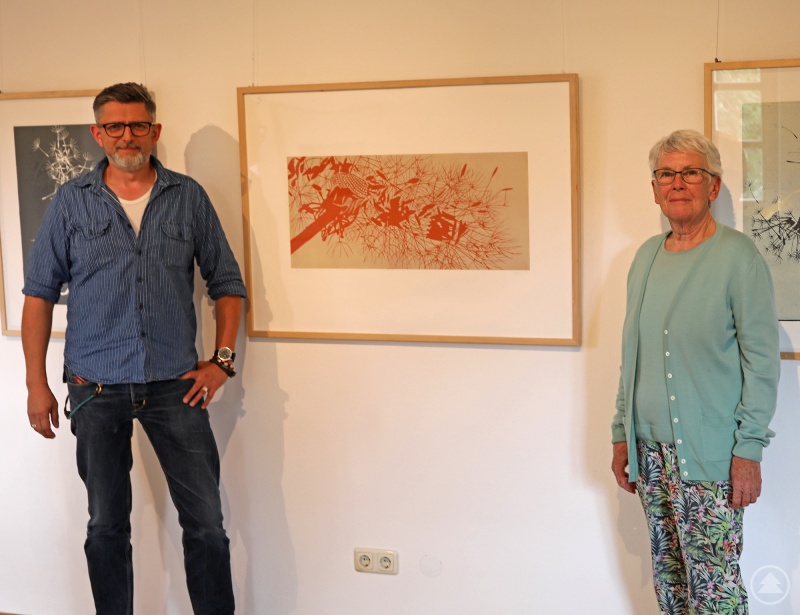 Künstlerin Gisela Griem mit Christian Binder, Kurator der Ausstellung.