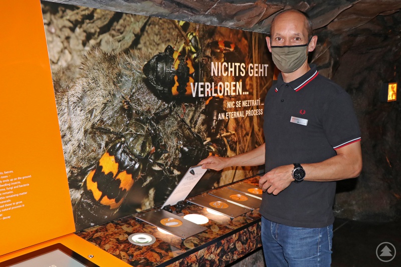Doch zurück zum Wurzelgang, in denen Besucher auf die Größe einer Maus „schrumpfen“: „Bei der Überarbeitung war uns wichtig, Prozesse zu verdeutlichen, die im Nationalpark unter der Erde ablaufen“, so Klein. Neu ist zum Beispiel ein Höhlenkino, in dem ein Film über Totengräberkäfer zu sehen ist. Auch darüber hinaus wurde das Thema Zersetzung von Aas an einigen Stellen neu integriert. Vertieft werden aber auch Inhalte zu Mykorrhiza, also dem Zusammenleben von Pilzen und Pflanzen.