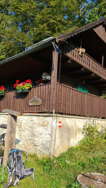 Am nächsten Tag war die Gruppe schon um 8:15 Uhr wieder vollständig, mit Wanderschuhen und Rucksack bepackt, vor dem Hotel versammelt. Zu Fuß ging es weiter über Hintenberg mit dem Aufstieg zur Jägerhütte. Der Weg zur Jägerhütte ist ein alter Handelsweg, auf ihm wurden Waren (hauptsächlich) Salz nach Tschechien transportiert. Umgekehrt wurden von Tschechien im Herbst große Gänsescharen nach Österreich getrieben. Die Holzhütte steht ziemlich einsam im Wald, ein kleiner fließender Brunnen vor dem Häuschen, manchmal mit Bier gefüllt, für die Wanderer. Richtig idyllisch.