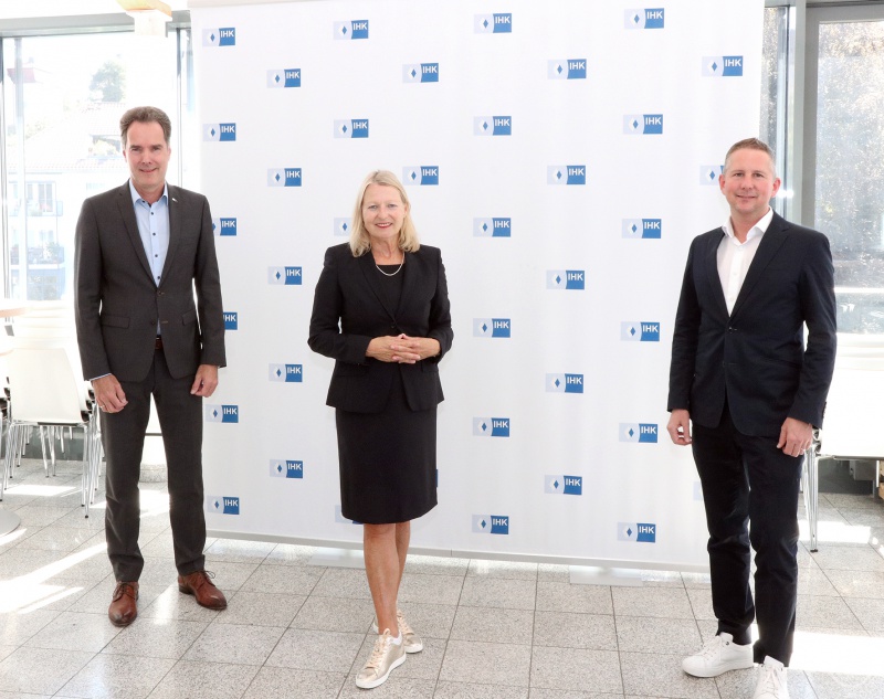 Sie trafen sich in Passau zum Austausch: (v.l.) IHK-Hauptgeschäftsführer Alexander Schreiner, die Vorsitzende des IHK-Gremiums Elisabeth Hintermann sowie ihr Stellvertreter Johannes Huber