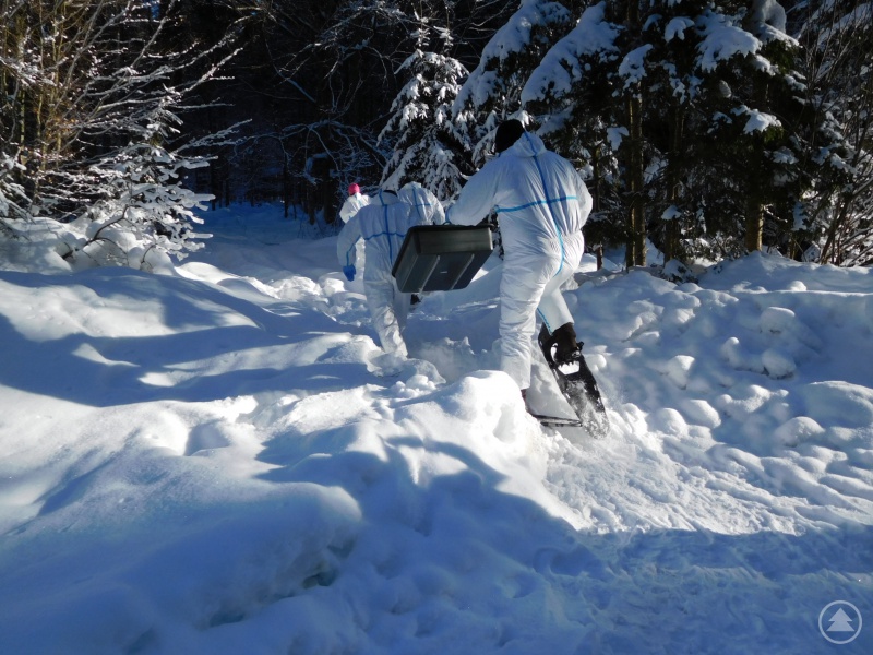Bereits im Februar 2019 wurden im Landkreis Übungen zur Bergung von Wildschweinkadavern durchge-führt, bei denen Kadaver in Waldgebieten gesucht und geborgen wurden, teils unter widrigen Bedingungen mit Schneeschuhen im Tiefschnee.