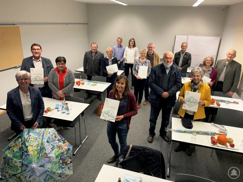 Eigentlich sollte die kleine Feier im neu gestalteten Innenhof am Erweiterungsbau des Landratsamtes abgehalten werden, aber aufgrund der regnerischen Witterung verlegte man den Festakt kurzfristig in einen Seminarraum der Volkshochschule. Alle acht Gartenbesitzer, meist in Begleitung ihrer Ehepartner, waren gekommen und von Landrätin Röhrl gab es ein Lob: „Mit ihren natürlich gestalteten Gärten und vielfältigen Lebensräumen setzen Sie ein Zeichen gegen Artenschwund und Versiegelung!“