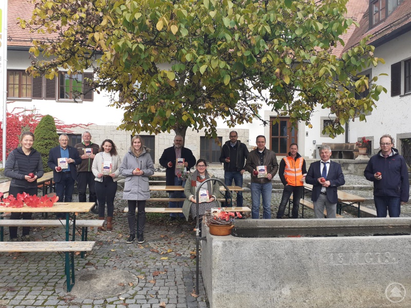 Vergangenen Dienstag konnten sich die Damen und Herren der Ilzer Land Gemeinden ein Bild von der Aktion am Staatsgut Kringell verschaffen und stellten sich zum Abschluss der Streuobstaktion noch für ein gemeinsames Foto zusammen.