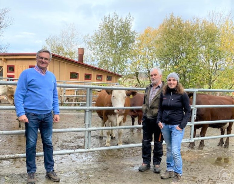 Damit die Milchkühe mehr Bewegungsfreiheit haben, wurde der frühere Anbindestall zu einem Laufstall mit Auslauf umgebaut. Auf der Weide grast eine Mutterkuh-Herde „Rotes Höhenvieh“ - eine alte robuste Rinderrasse, die fast ausgestorben war. Auf dem Bognerhof gibt es außerdem Waldschafe, Hühner und Bienen; auch Gemüse und Obst werden angebaut. Alexander Muthmann war beeindruckt, mit welchem Engagement die junge Landwirtin den Bognerhof in die Zukunft führt , auf dem drei Generationen unter einem Dach leben. „Ich habe mich gemeinsam mit meinem Mann entschieden, den Hof weiterzuführen und Landwirtschaft mit Rücksicht auf die Natur zu betreiben, ihr Wertschätzung entgegenzubringen“, beschreibt die junge Landwirtin ihre Motivation. Das Logo des Betriebs lautet deshalb auch: „Bognerhof… mehr Natur!“