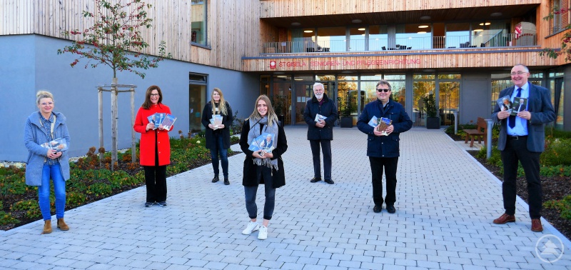 1510 Bücher als Dank für den Einsatz der Caritas-Mitarbeitenden. Bei der Übergabe von re.: Battenberg Gietl-Verlagsleiter Josef Roidl, Bischöflich Beauftragter für den Diözesan-Caritasverband Diakon Konrad Niederländer, sowie der Autor Rupert Berndl, mit Michaela Pertler, St. Elisabeth-Fachdienstmitarbeiterin, Corinna Holzinger, St. Elisabeth stellv. Heimleiterin, Michaela Meindl, St. Gisela Einrichtungsleiterin und deren Stellvertreterin Anneliese Friedl.