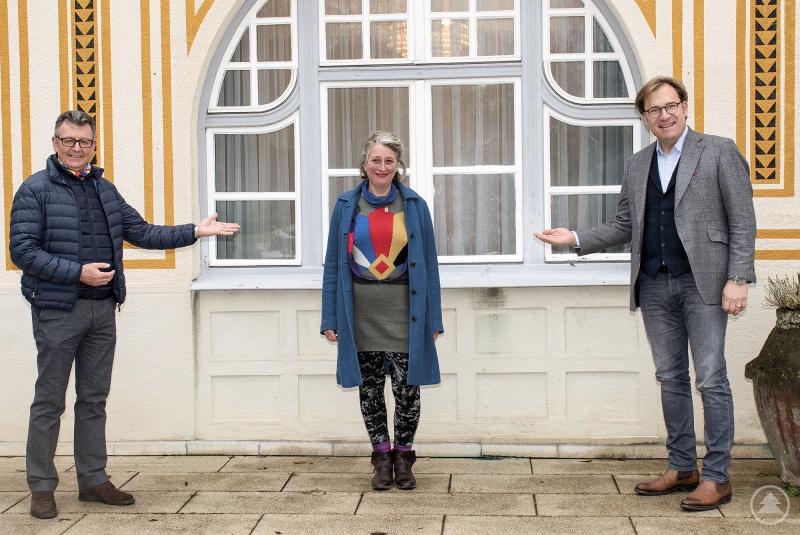 von rechts: Bezirkstagsvizepräsident Dr. Thomas Pröckl, Stephanie Griebl und Bezirksheimatpfleger Dr. Maximilian Seefelder, Leiter des Kulturreferats