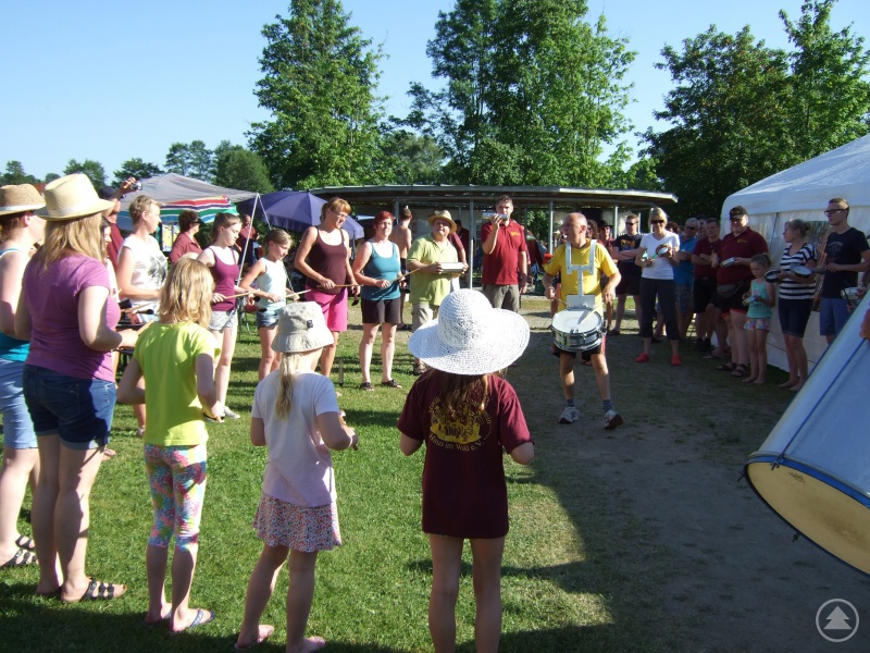 Georg Dorfner von der Musikwerkstatt machte vor Ort einen Workshop für Trommel und Perkussion. Der Auftritt war sensationell nach der kurzen Übungsphase. Man merkte, dass die Teilnehmer Rhythmus und Musik im Blut haben.