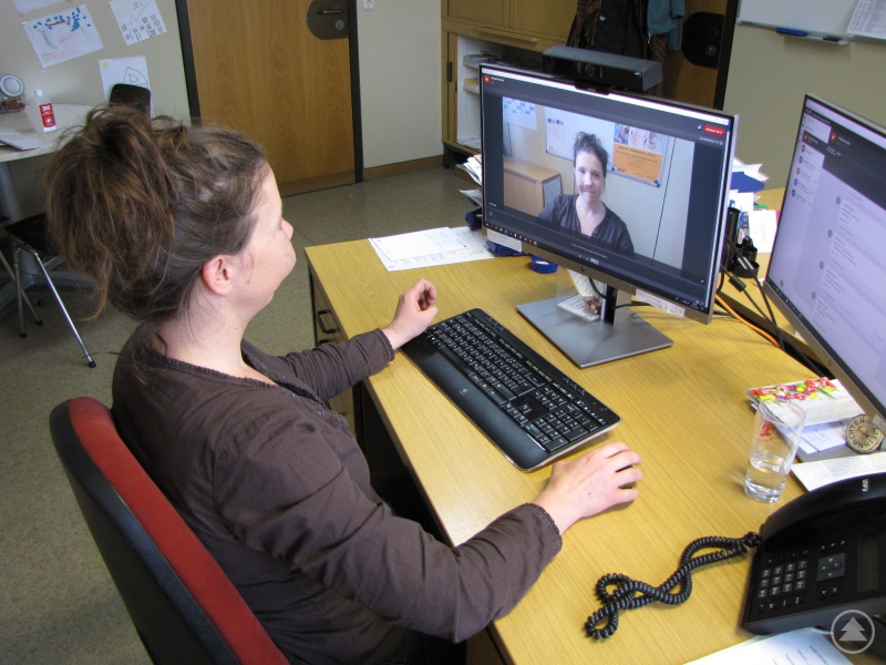 Die Pädagogin Elisabeth Hullard-Pulstinger beim Testen der Videokonferenz für die künftige Online-Beratung der KoKi.